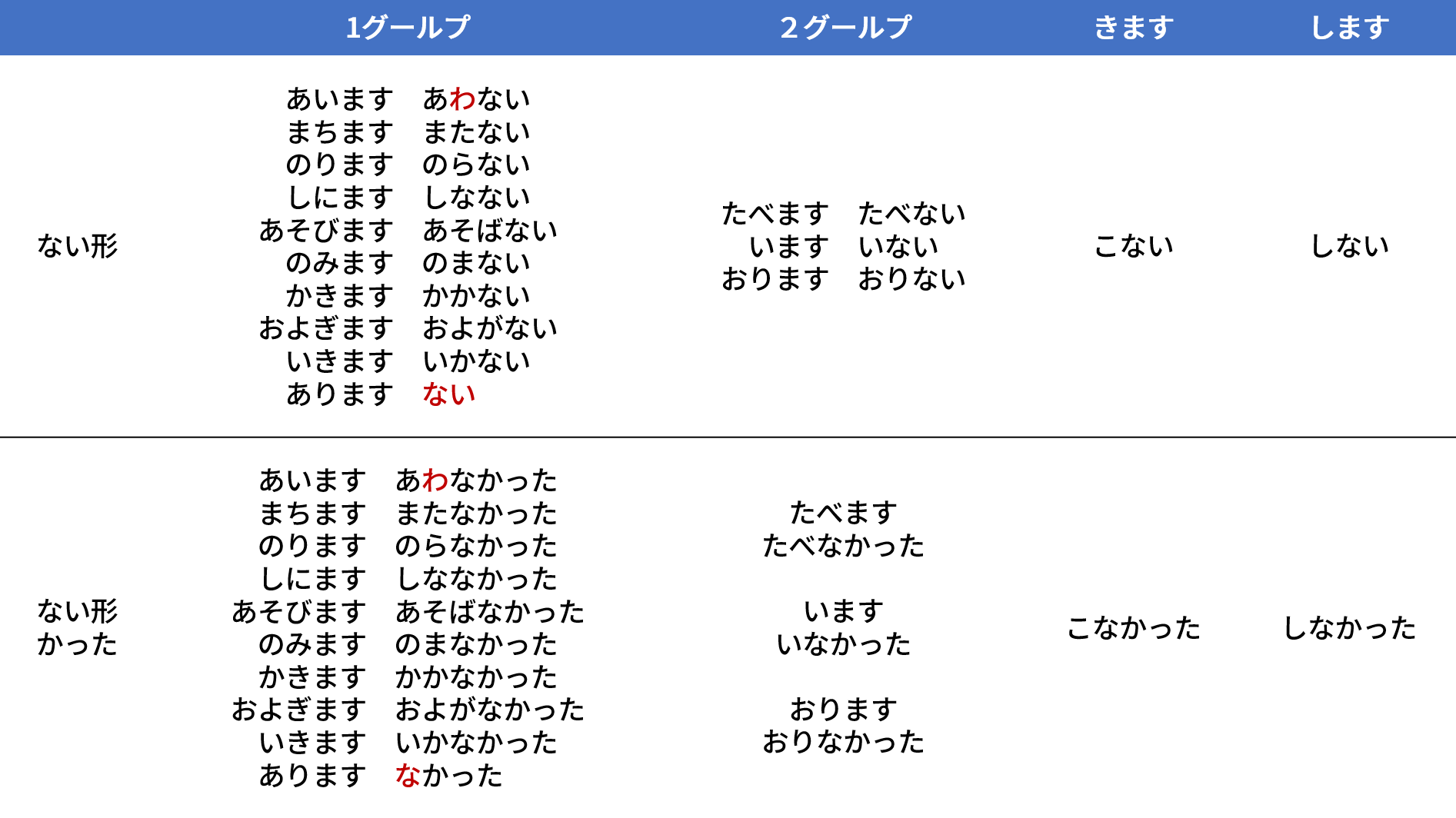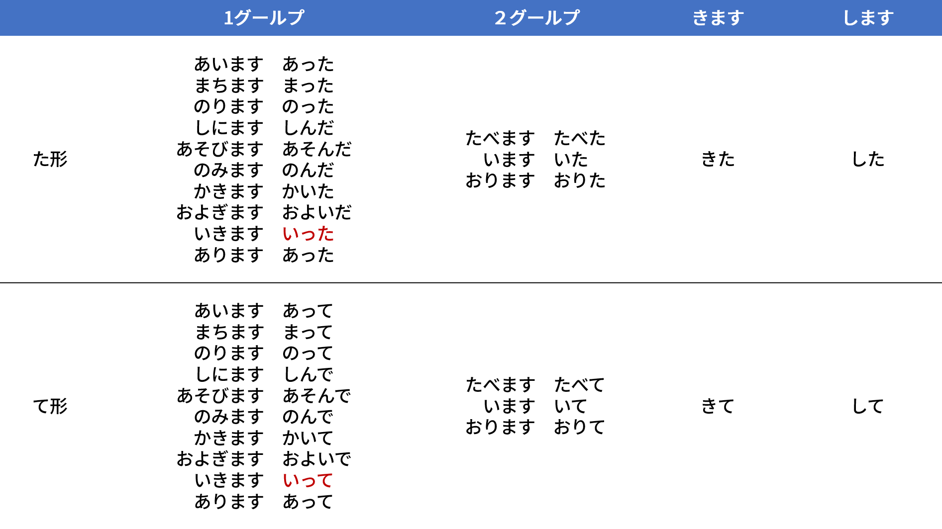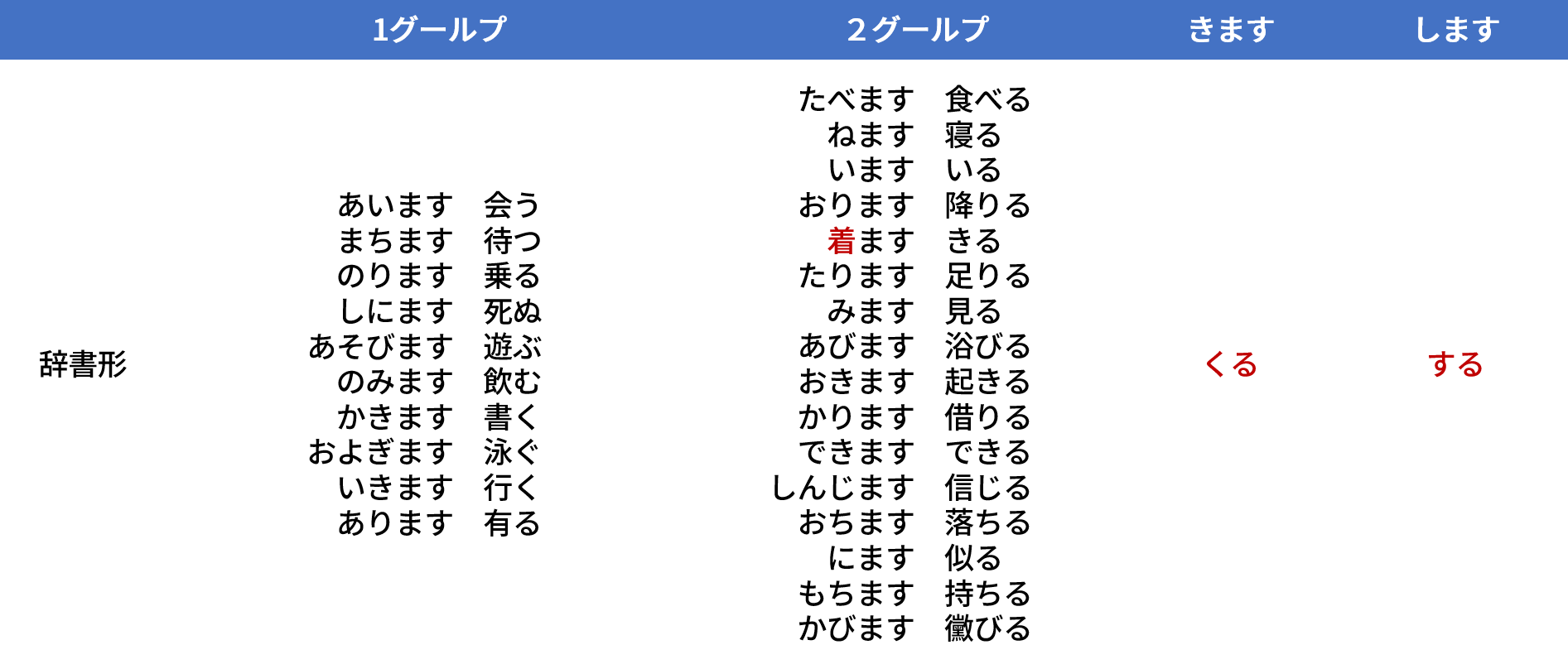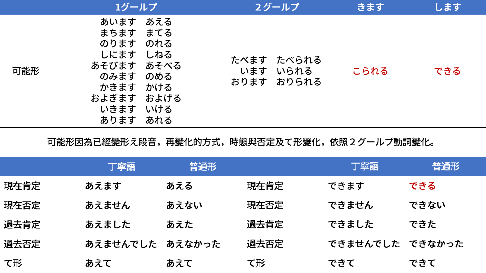 日本語動詞變化速查表